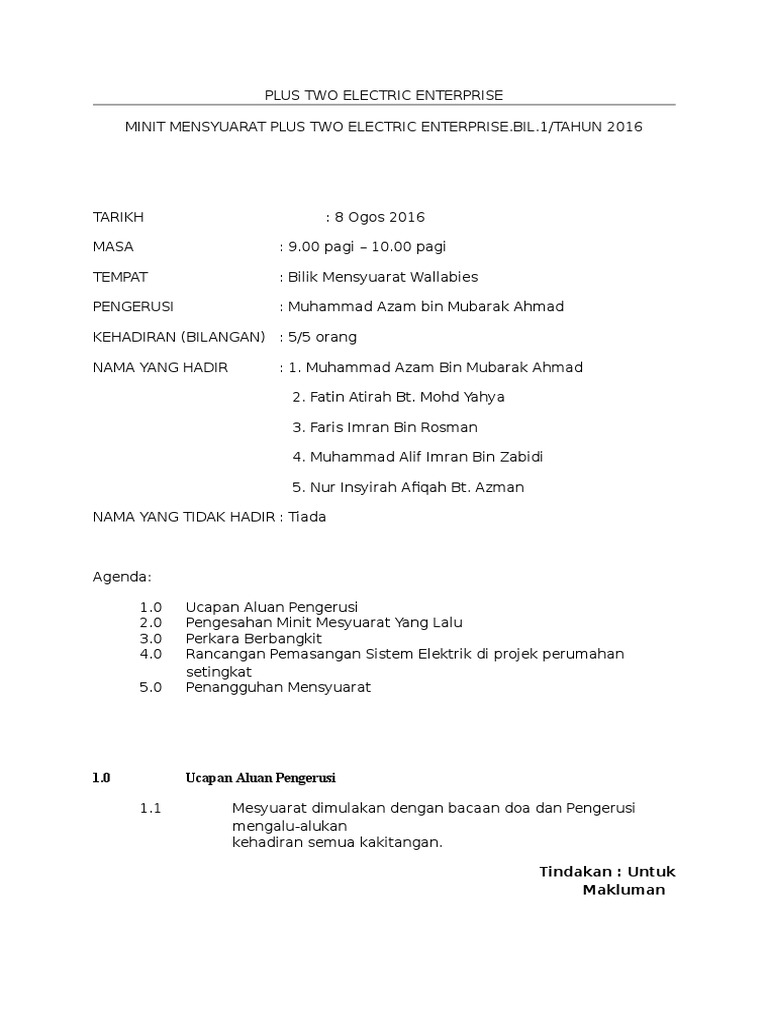 Contoh Minit Mesyuarat Syarikat Swasta Kali Pertama - The collection that consisting of chosen picture and the best amongst others. Muhammad Firdaus bin Fadzil. Perniagaan dan kesihatan bilangan 8.