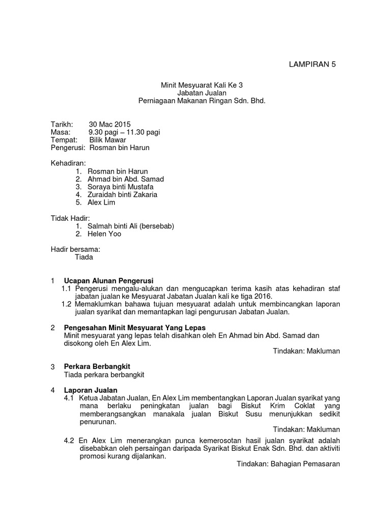 Contoh Minit Mesyuarat Terbaru Pdf